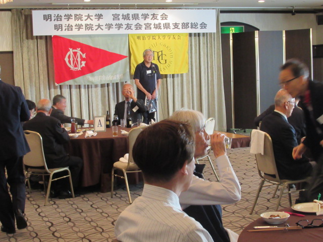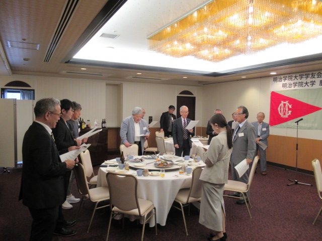 乾杯のご発声は、明治学院大学学友会運営委員会副委員長の 原田 健一(はらだ けんいち) 様より賜りました。
