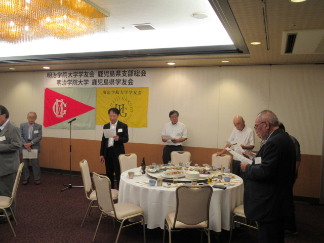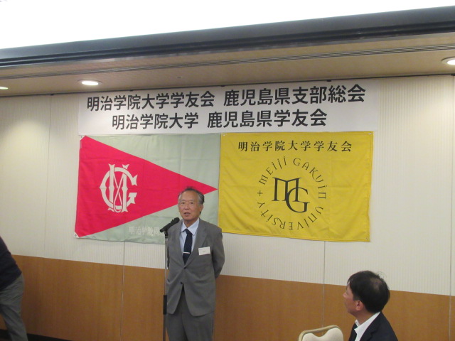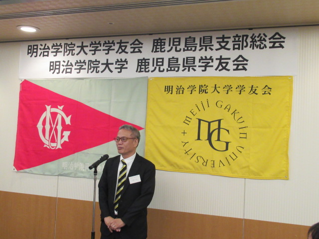 はじめに、開会のご挨拶を明治学院大学学友会鹿児島県支部長の 塚脇 伸(つかわき しん) 様より賜りました。